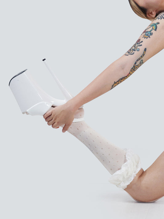 𝐌𝐀𝐘𝐖𝐔𝐔魅烏「Pole Perfection」Floral Trim White Socks